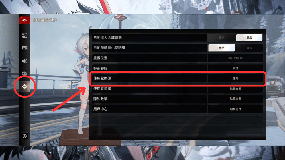 - 選擇「使用兌換碼」,輸入序號即可領取獎勵!