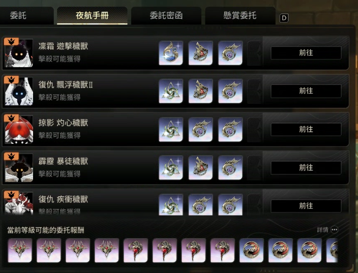 相較於夜航手冊,懸賞任務的流程更長,但報酬也更誘人。完成後保證獲得一張金色魔之楔設計稿(也就是鍛造所需材料)。