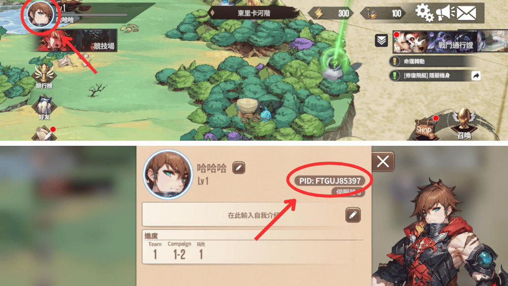 - PID 可在遊戲主畫面左上角頭像右側找到,點擊即可複製。