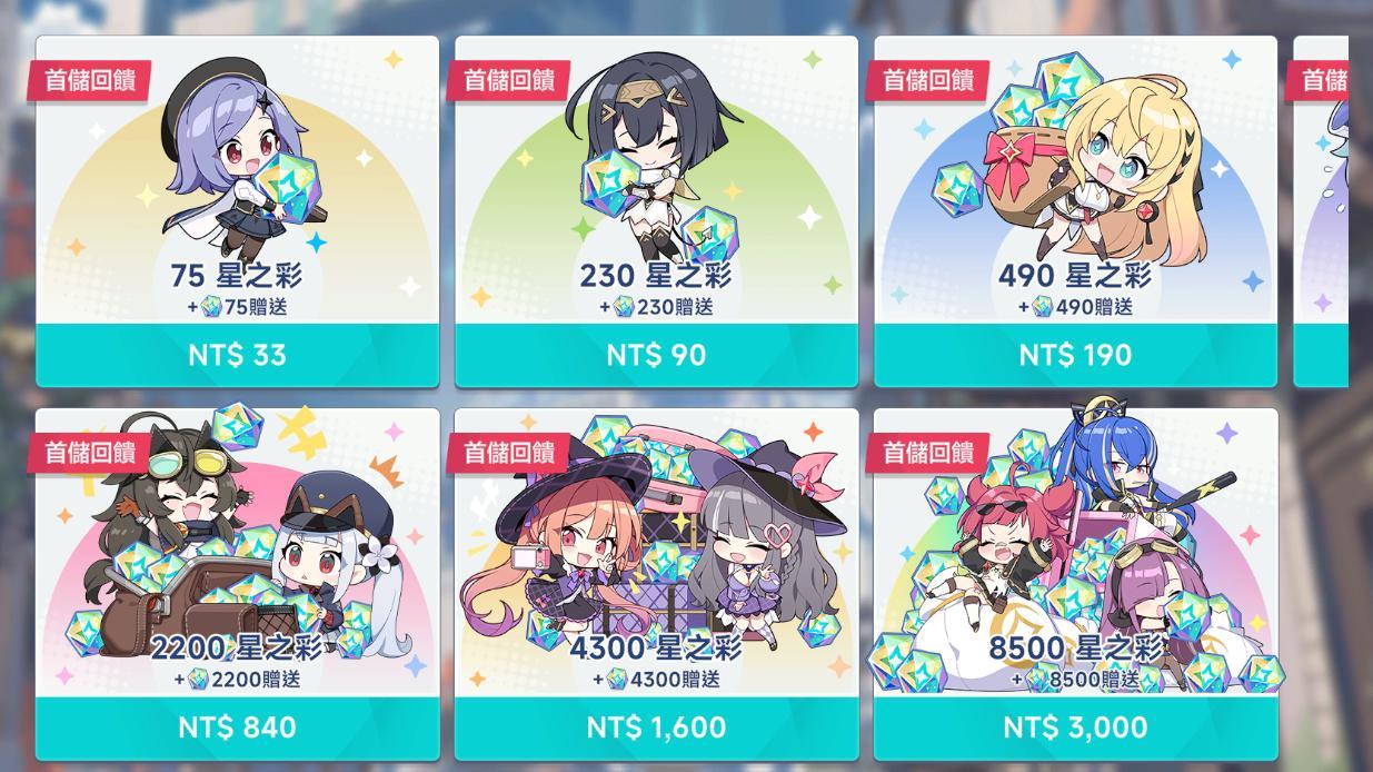 「星之彩」是遊戲中的主要儲值貨幣,可 1:1 兌換成「星之砂」,