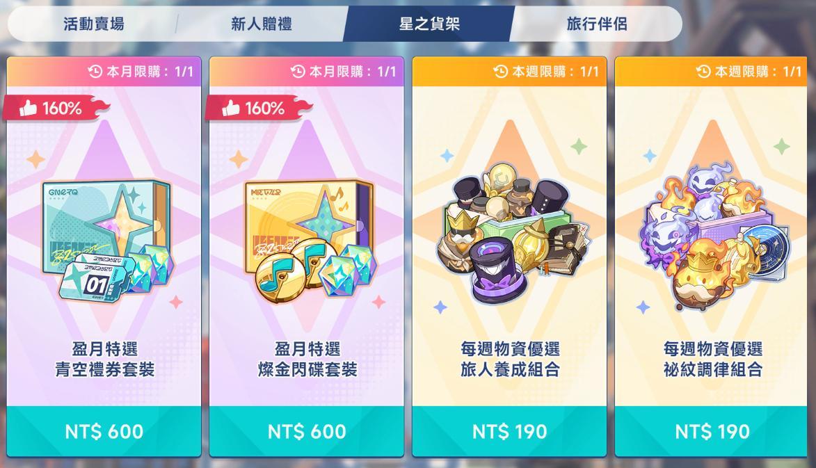 | 每週物資優選・旅人養成組合 | 190T | 升階素材組 |