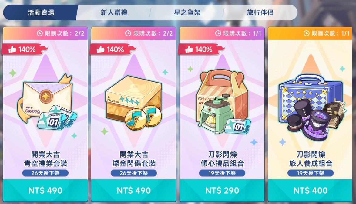 以下整理活動商店、新人禮包與星之貨架三大類課金項目👇