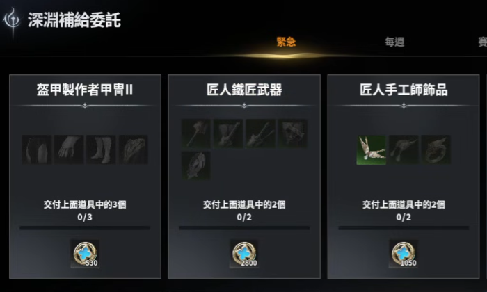 每日與每週皆可透過製作或交裝備換取深淵點。