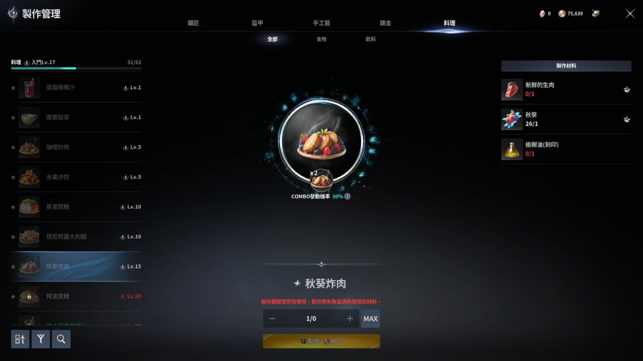 此外,有些料理材料無法從野外取得,必須從「料理製作商人」購買,建議先確認再大量量產。