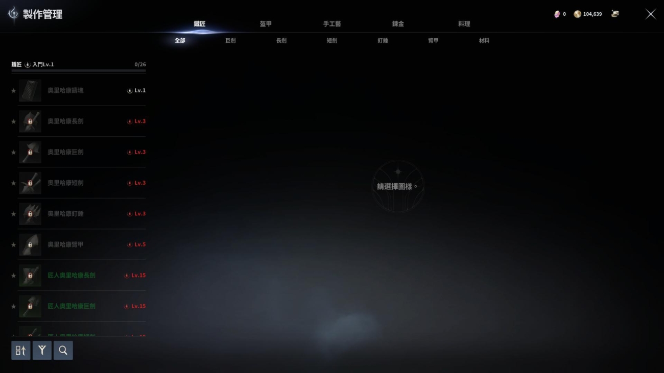 | 製作五大類 | 鐵匠、盔甲、手工藝、煉金、料理 |